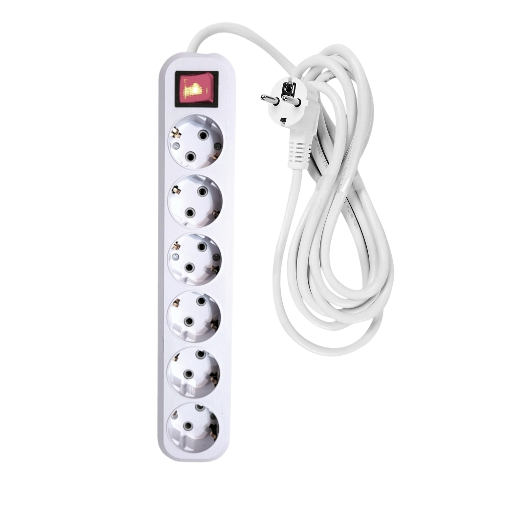 Сетевой фильтр 5 метров от "MAXIMUM QUALITY TOOLS" создан с 6 розетками и евровилкой. Корпус выполнен из белого негорючего АБС-пластика и подходит для использования только внутри помещений-степень влагозащиты IP 20. Розетки с заземлением расположены под углом 45 градусов.