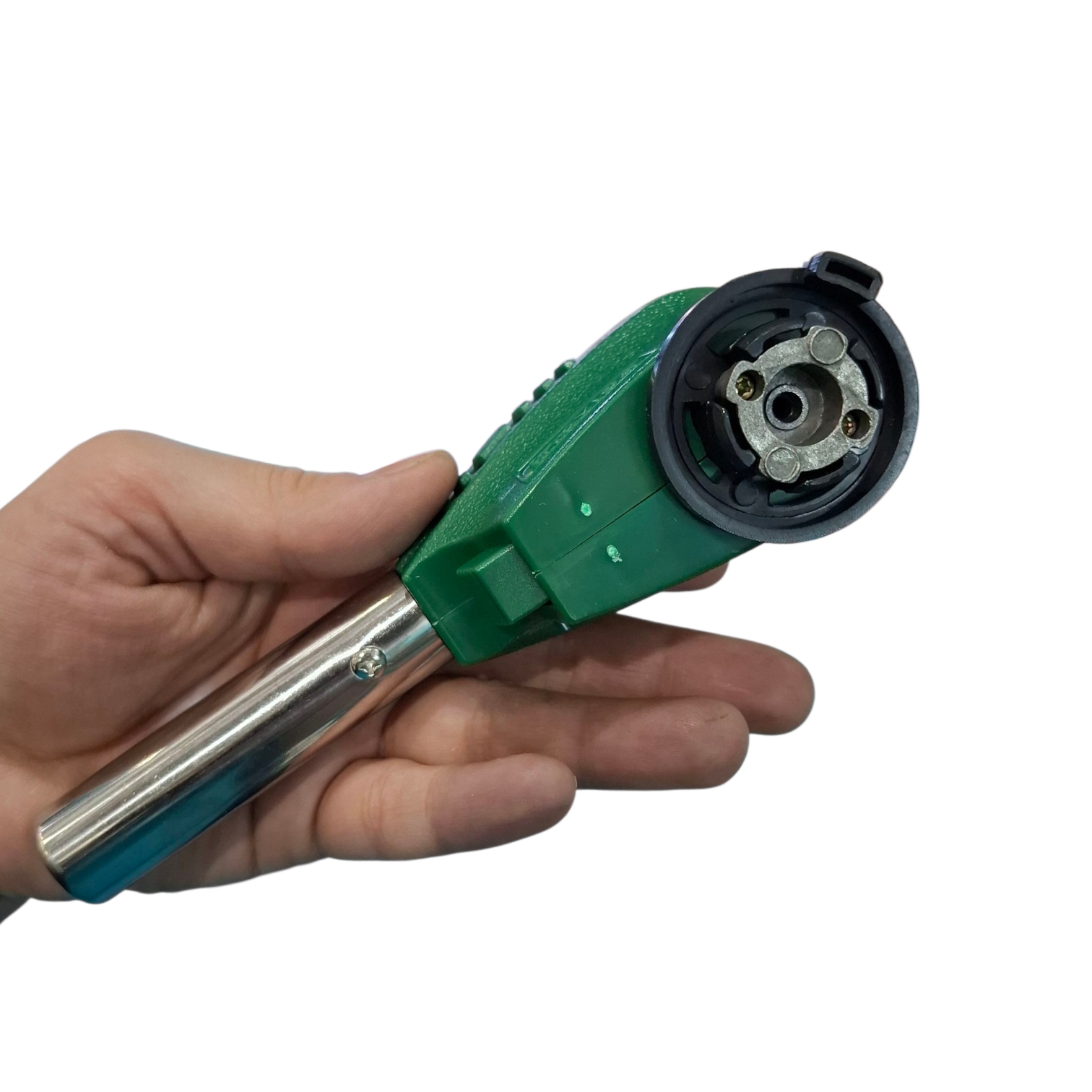 Горелка оснащена пьезоподжигом и вентилем тонкой регулировки пламени. Для работы потребуется балонн на основе газа пропан/бутан.