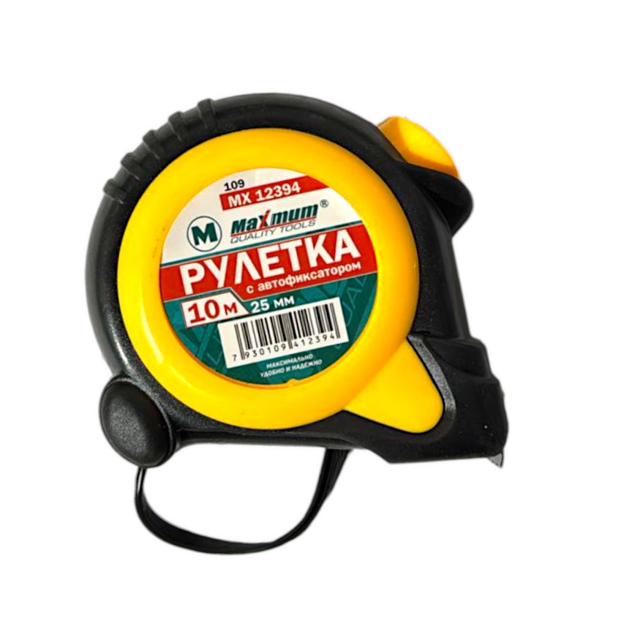 Рулетка строительная 10 метров от "Maximum Quality Tools" выполнена из ударопрочного АБС-пластика с обрезиненным нескользящим покрытием. Специальная система «Автостоп» обеспечивает фиксацию измерительной ленты в любом рабочем положении. Измерительная рулетка оборудована силиконовым ремешком и специальным зажимом на задней панели, который позволяет фиксировать инструмент на поясе.