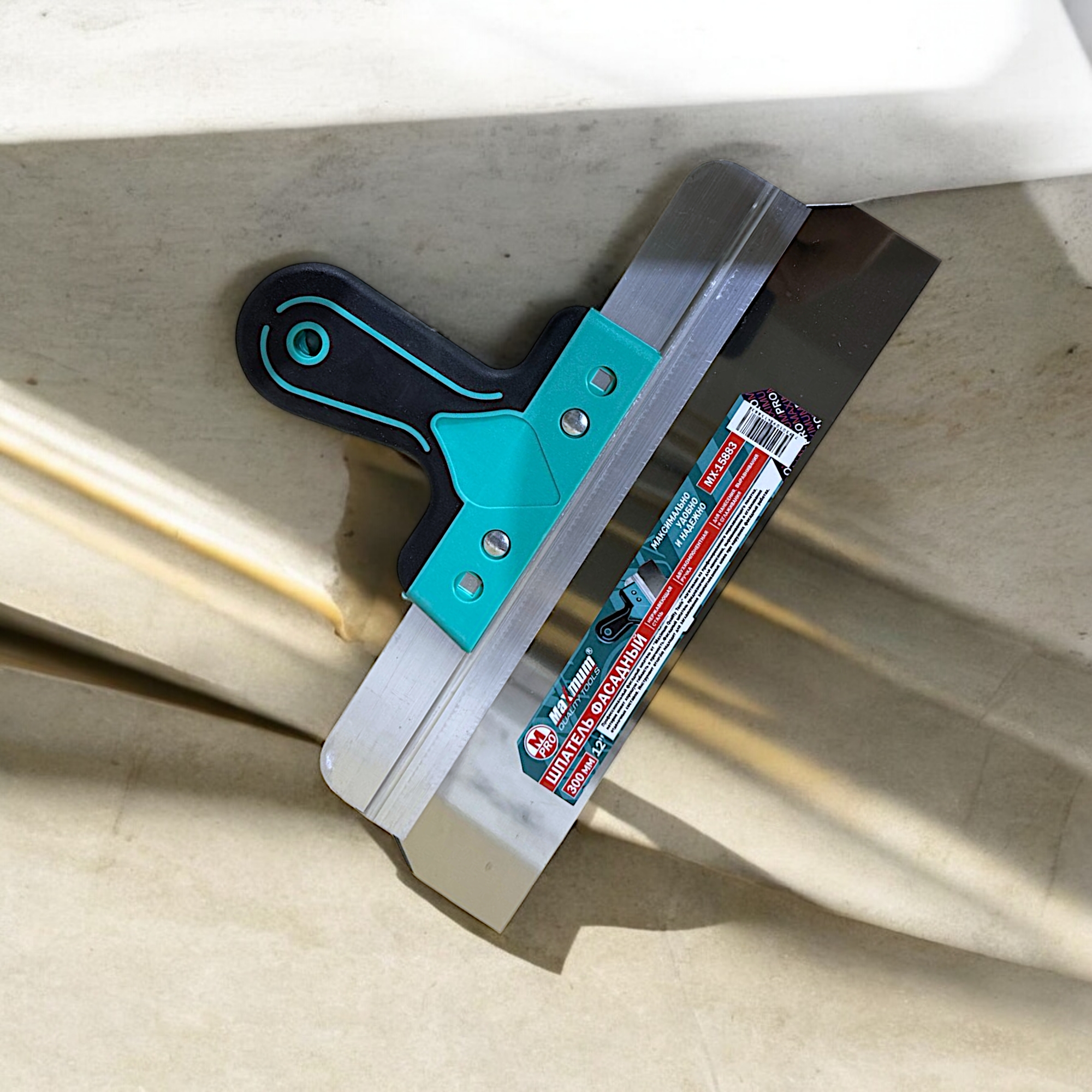 Шпатель фасадный алюминиевый 350 мм x 0.5 мм, 14", двухкомпонентная рукоятка, 410, "MAXIMUM" MX15890