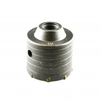 Большое количество вариантов комбинаций с данной оснасткой можно производить благодаря особым резьбовым соединениям. Крепление коронки - внутренний конус М 22 позволяет осуществлять быструю сборку благодаря удобной резьбе. Корпус коронки под бетон 70 мм имеет внешние канавки, которые способствуют увеличению срока службы и уменьшению трения.